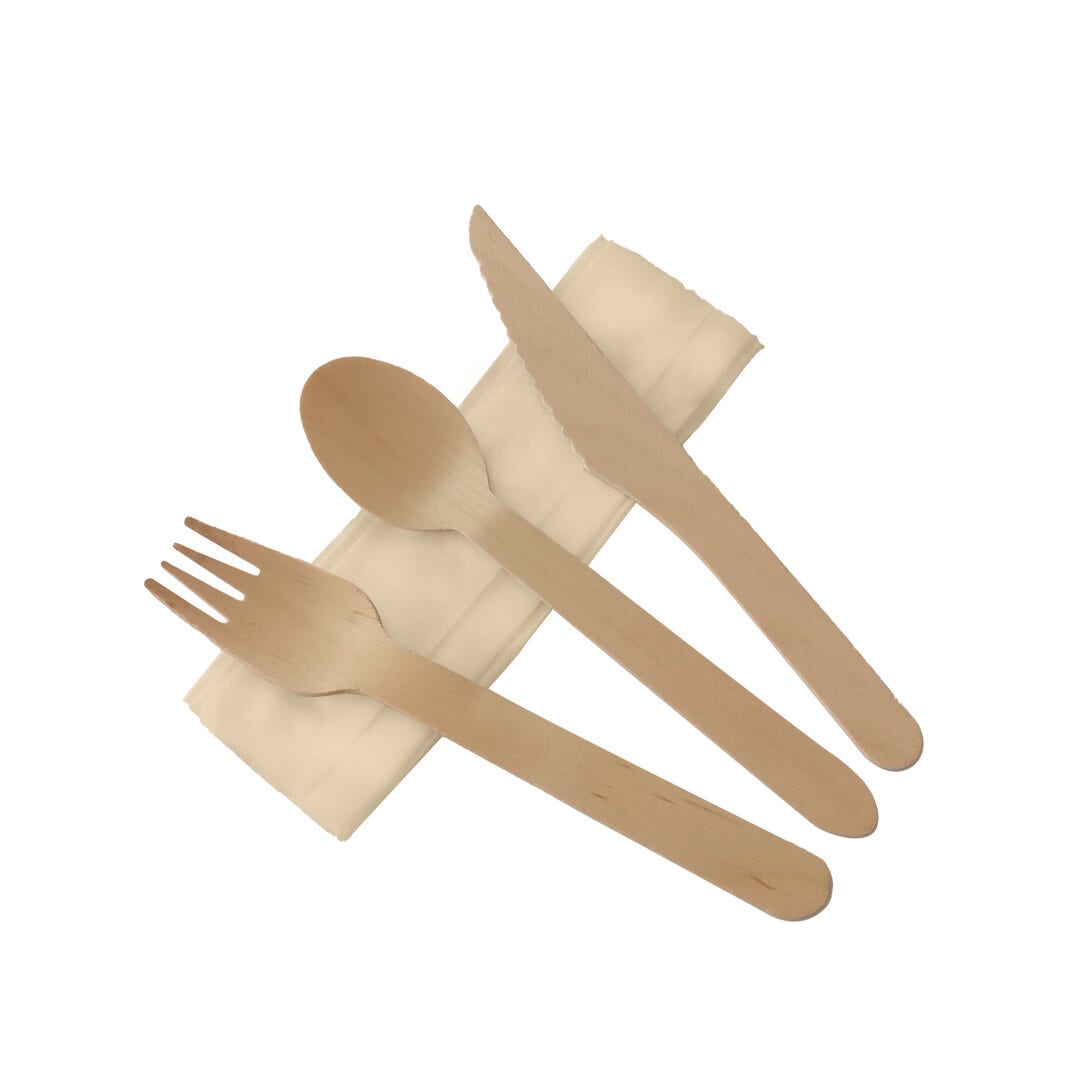 Τα ξύλινα μαχαιροπήρουνα για κουβέρ, είναι η οικολογική εναλλακτική απάντηση στα πλαστικά μιας χρήσης. Είναι παραγόμενα απο ενιαίο σκληρό ξύλο συμήδας που είναι κατάλληλο για μια χρήση και είναι βιοδιασπώμενο. Το σετ περιλαμβάνει πιρούνι, μαχαίρι, κουτάλι και μία χαρτοπετσέτα