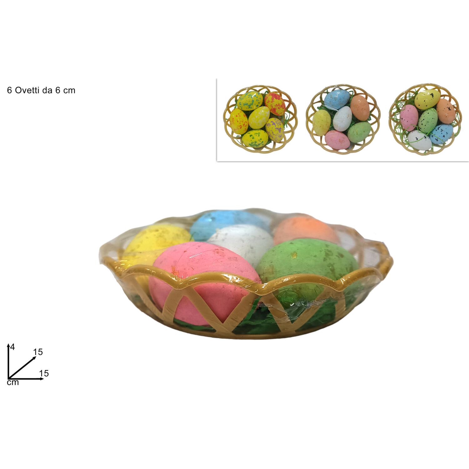 Πασχαλινό καλαθάκι με 6 αυγά από πολυεστέρα σε διάφορες αποχρώσεις 15x15x4cm