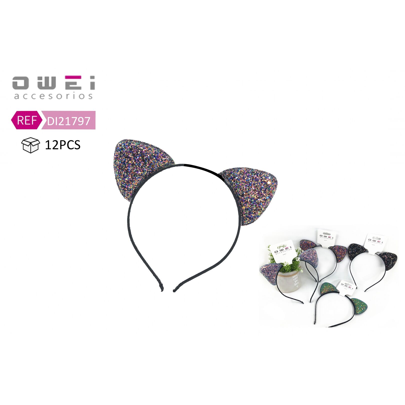 Στέκα μαλλιών αυτάκια γάτας με παγιέτα σε λευκό χρώμα